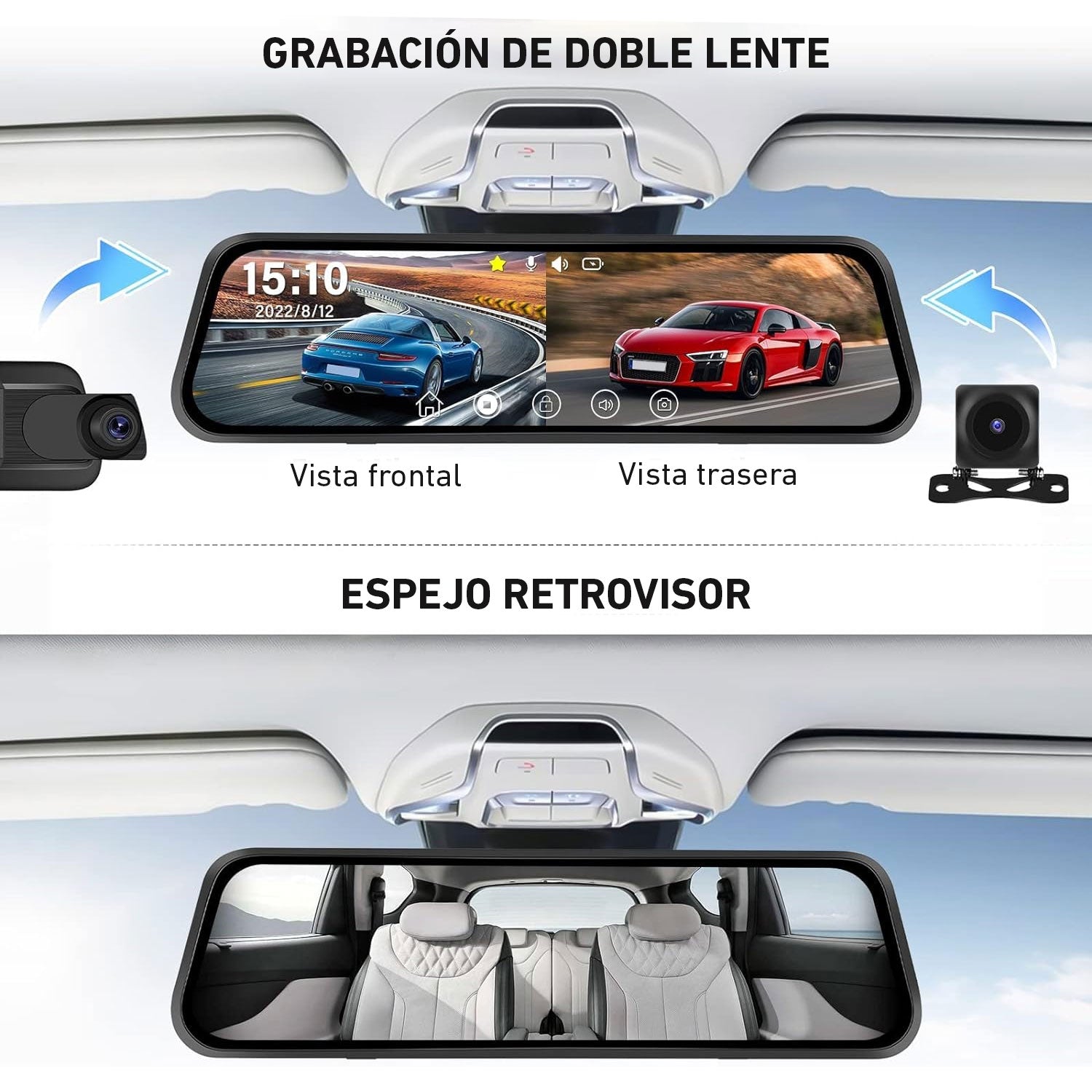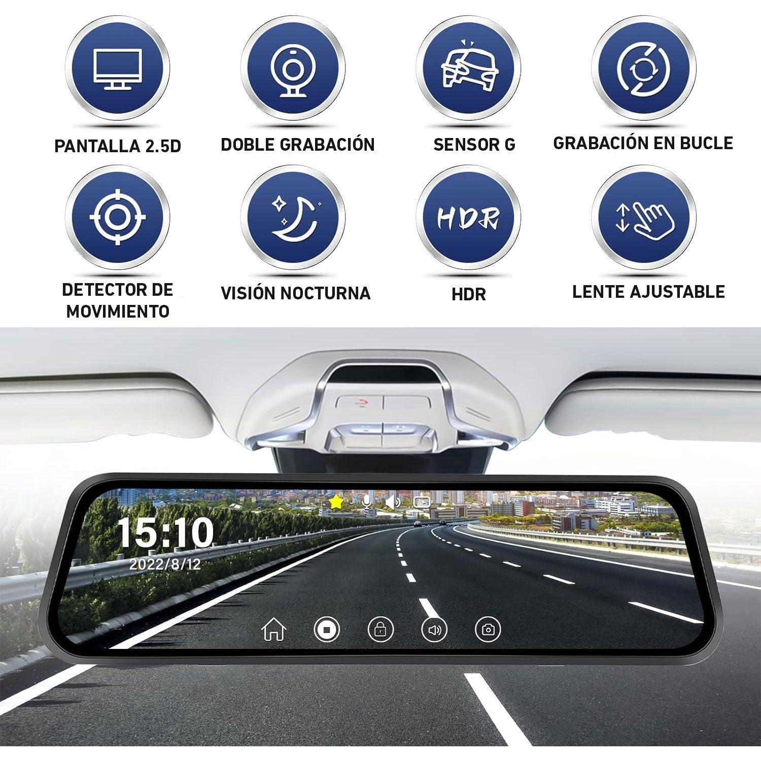 Cámara Espejo retrovisor L1027 WiFi para auto camioneta 1080p DVR táctil 9.6