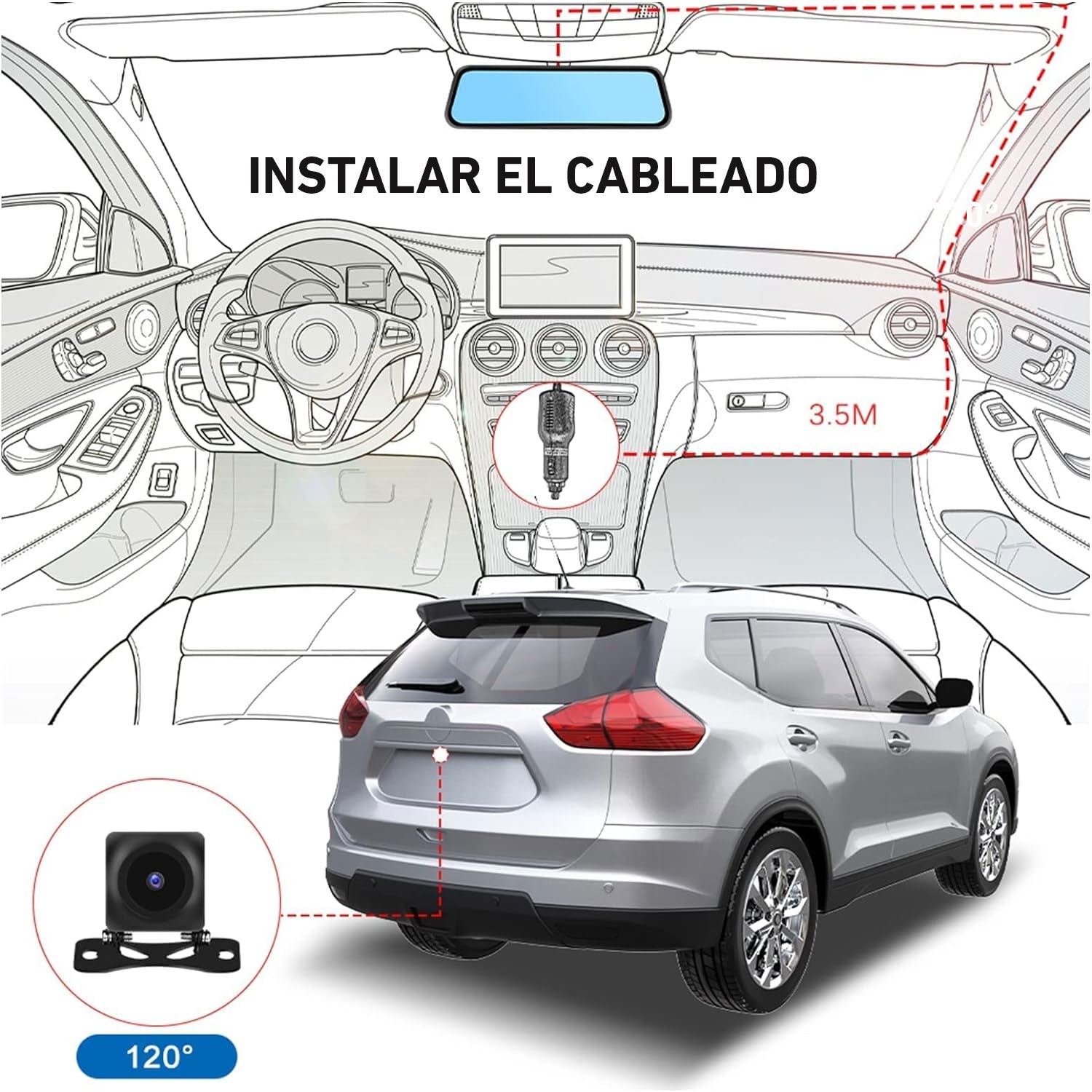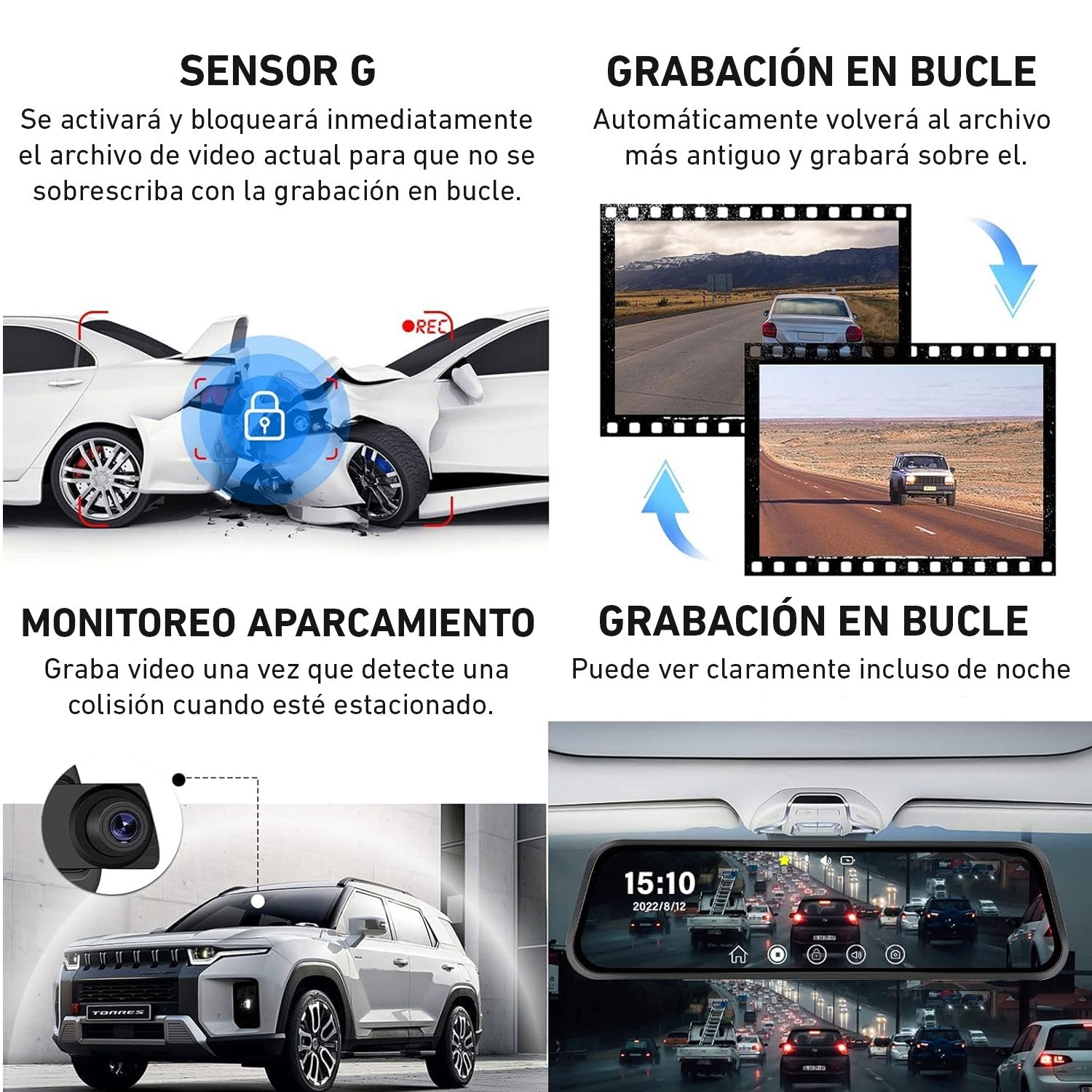 - Trasera: 4 cristales + ángulo de 140 grados + apertura F2-2 + 1920x1080P.