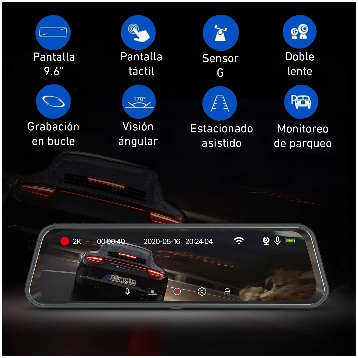 Cámara de tablero para carro Ultra HD doble lente 9.6 pulgadas L4060