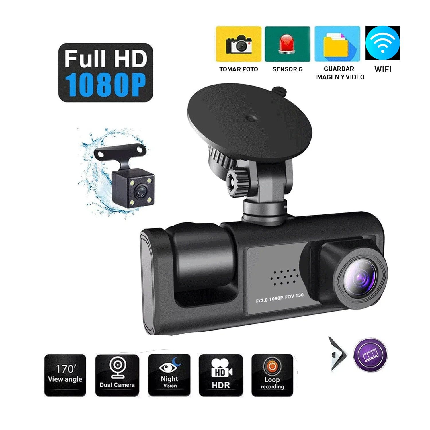 Cámara Vehicular T717W WIFI 1080p 3 lentes Pantalla 2.0 Auto carro