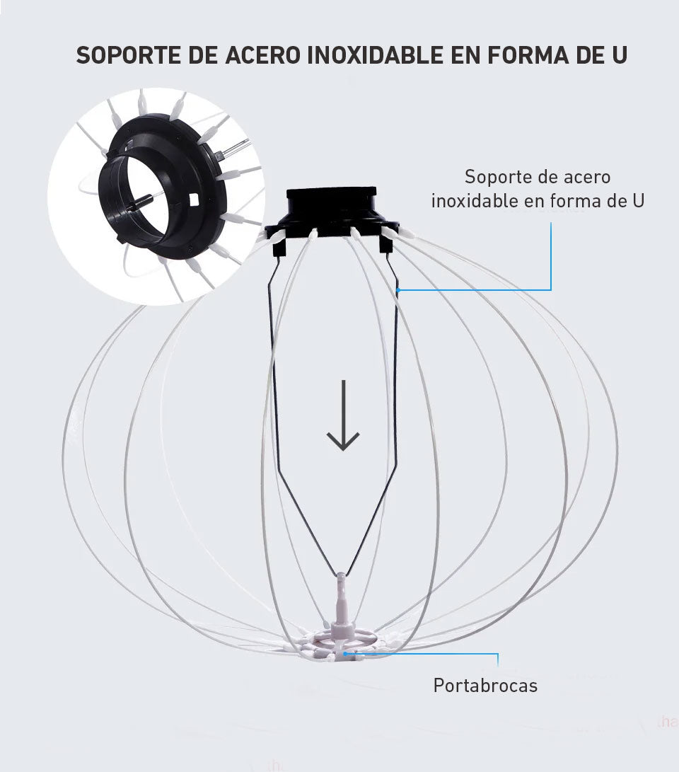 - Ángulo de iluminación 360° uniforme y omnidireccional.