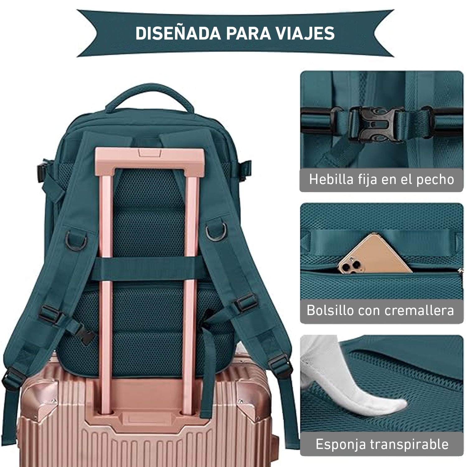 - Tres compartimientos principales para guardar todo lo que necesite, como Laptop, Tablet, ropa de cambio, etc.