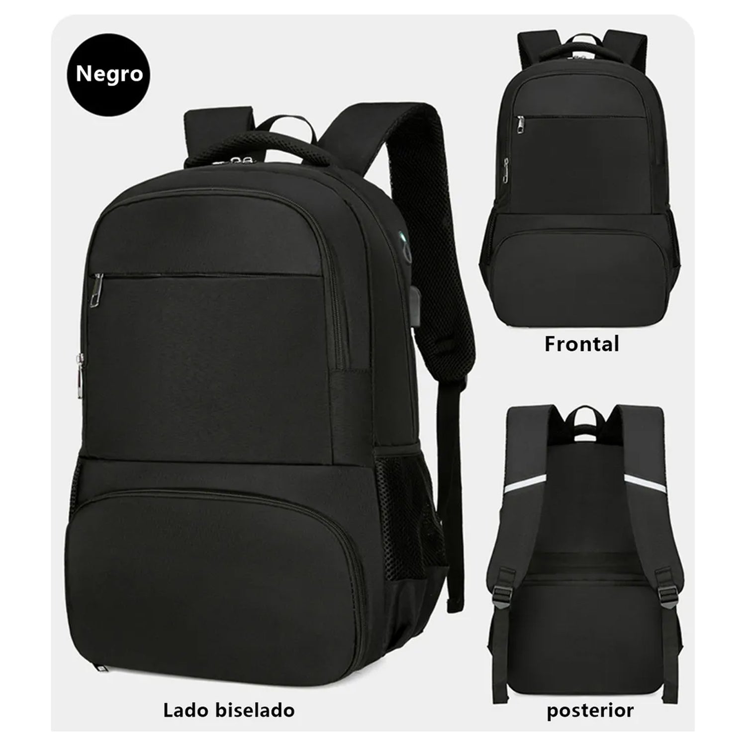- Cantidad de bolsillos: 1 compartimiento para alimentos, 1 compartimiento principal multiusos, 1 compartimiento para laptop, 4 bolsillos internos, 2 bolsillos externos, 2 bolsillos lateral para botella de agua.