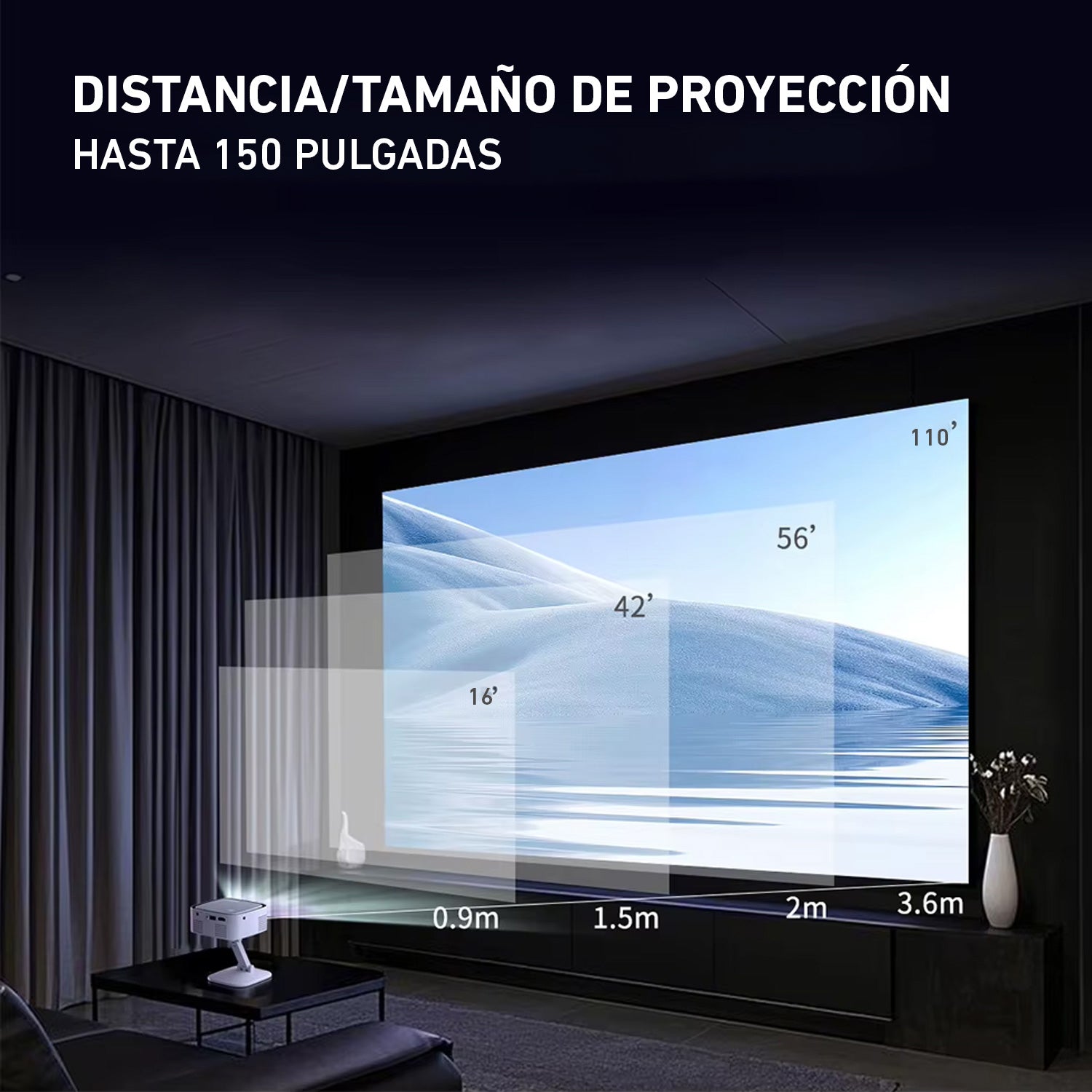 - Tamaño de proyección: 16 - 110 pulgadas.