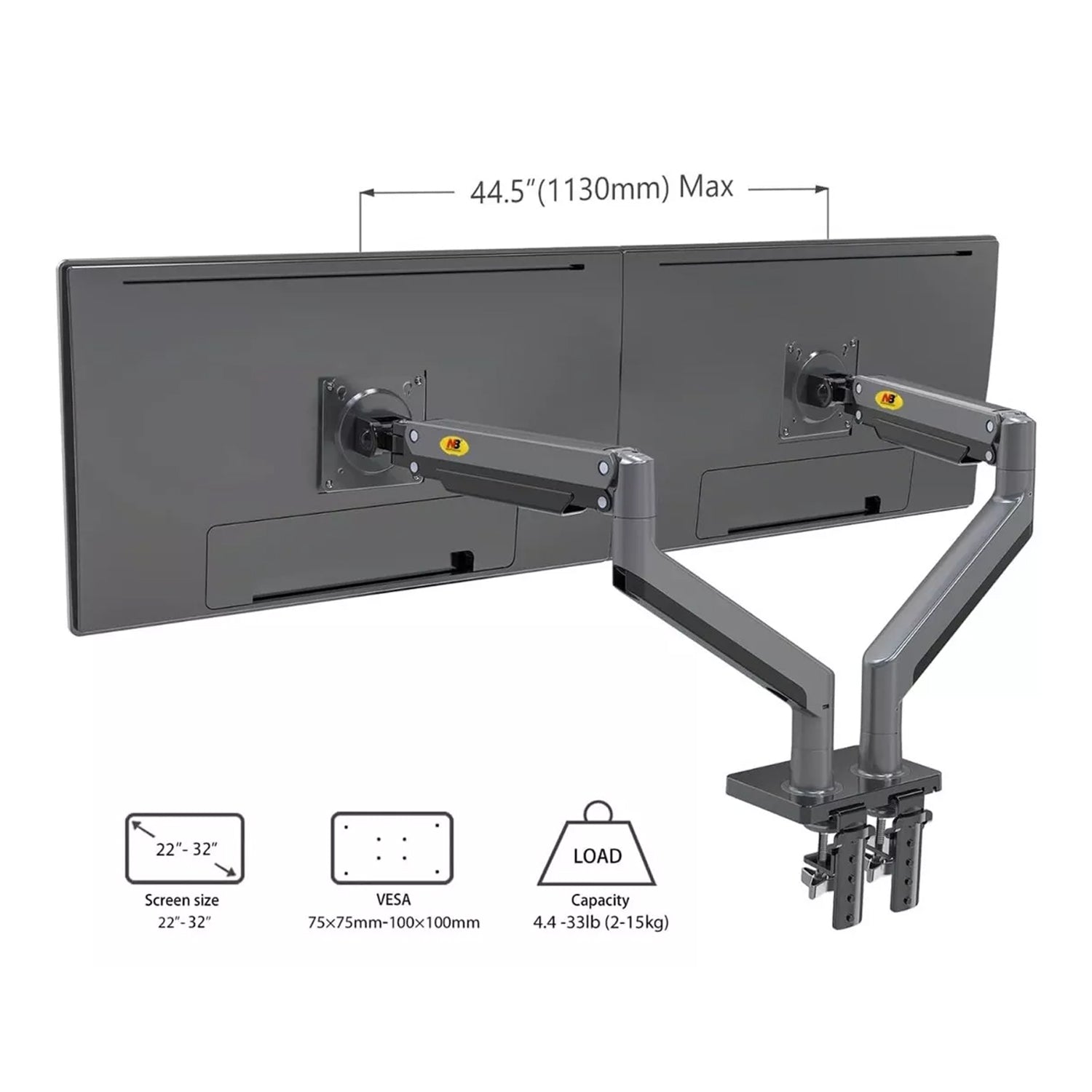 Brazo rack giratorio para 2 monitores de 22 a 32 pulgadas North Bayou G35