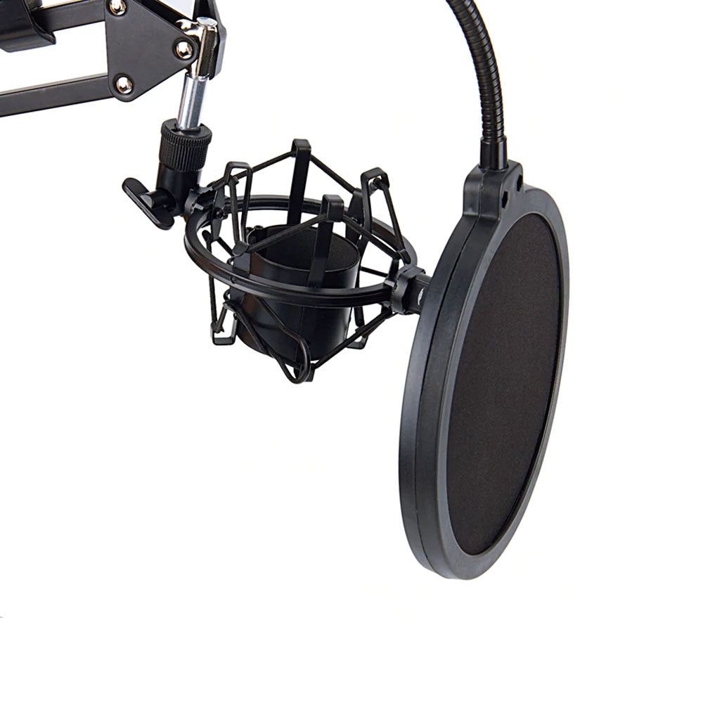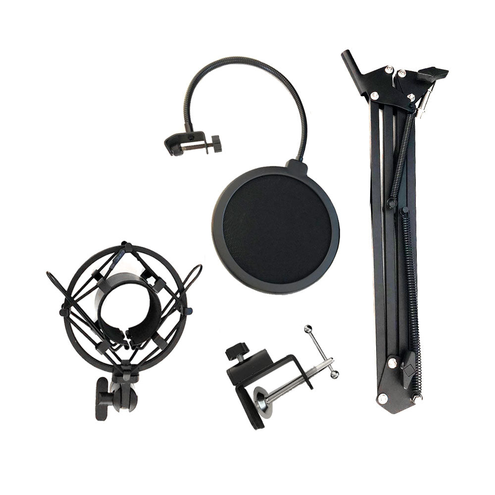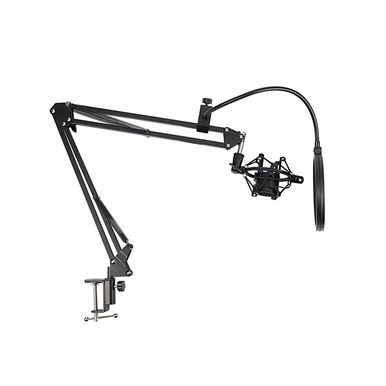 - Brazo fuerte y flexible con araña y Filtro Anti Pop para micrófonos condensadores.