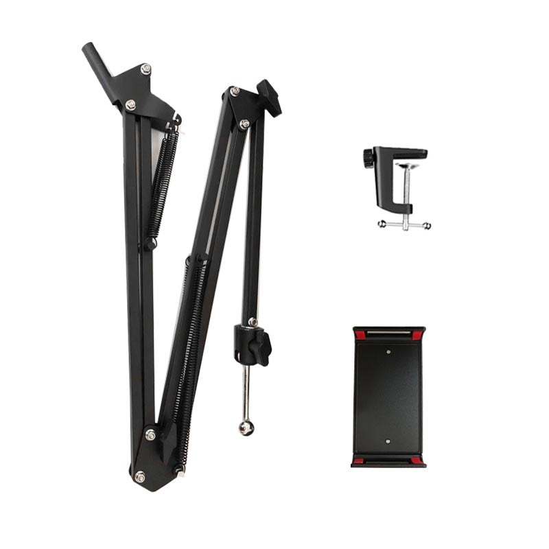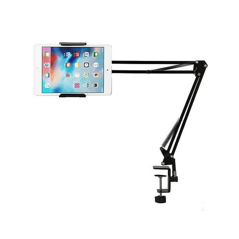 - Soporte flexible con brazo para teléfonos y tablets, con clip de cabecera para mesa o cama.