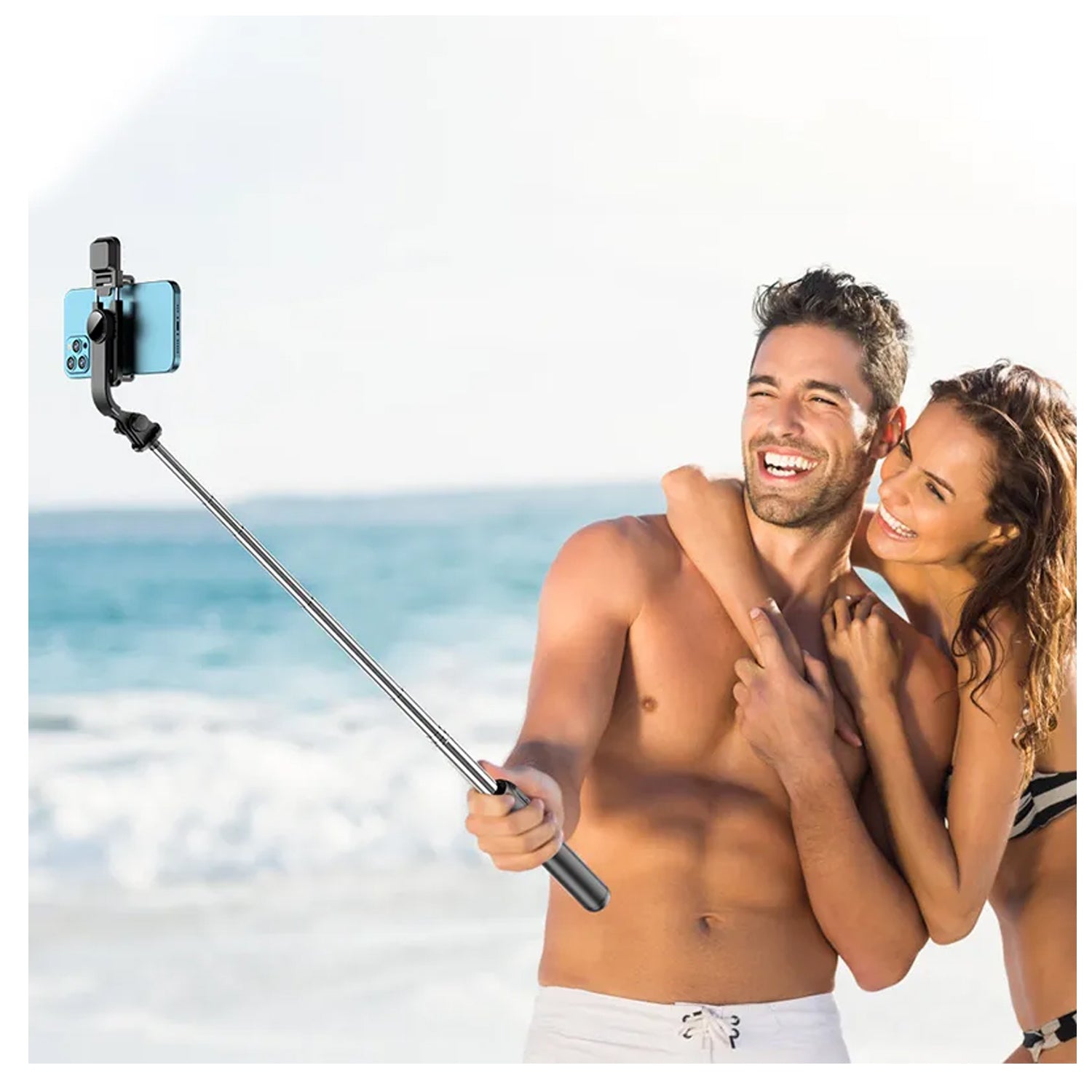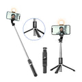 Palo Selfie Trípode Bluetooth Q02S con luz Led extendible celular control remoto